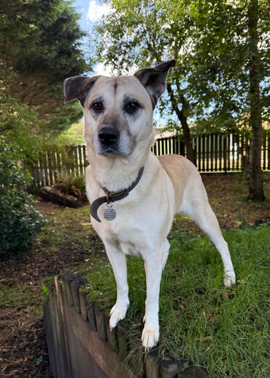 She loves her walks and exploring the local area with staff and our fabulous volunteers. While she walks nicely on a lead and harness and travels well in the car, she will need some continued recall training before being safely let off-lead.